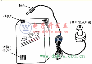 使用時,一般將助聽器置于使用者的上衣口袋內,注意話筒B的受音孔應朝外。戴上耳塞式耳機,并將插頭插入助聽器的插孔XS內,電路即自動通電工作;拔出插頭,助聽器即自動斷電停止工作。