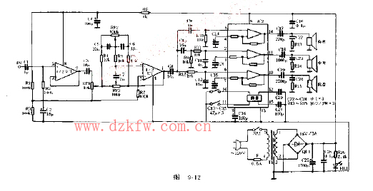 高品質(zhì)功放集成電路的應用,不僅使HI-FI放大器的制作大為簡化,同時也使越來越多的功放電路采用了電子分頻方式。電子分頻又稱前級分頻,其優(yōu)點在于:由于擴音設(shè)備與揚聲器之間不插入損耗大的LC元件,使得放音系統(tǒng)的阻尼因數(shù)獲得改善,頻率互調(diào)失真明顯減小,在主觀聽覺上,電子分頻的功放,放音時低音深沉,中音流暢,高音清晰,層次分明,解析力很高,令人耳目一新之感。