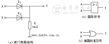 | 圖1 二極管或門電路結構及邏輯符號 |