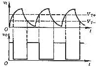 無論出現上述的那一種情況,都可以通過用施密特觸發器整形而獲得比較理想的矩形脈沖波形。由圖可見,只要施密特觸發器的