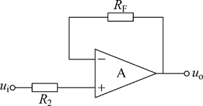 同相比例放大電路如圖2所示,輸入信號ui加在同相輸入端,輸出信號uo經過一個電阻RF反饋到反相輸入端,形成負反饋。