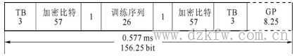 圖5 普通突發脈沖序列 57個加密比特:加密語音、數據或控制信息借用標志F:表明借用一半業務信道資源給FACCH