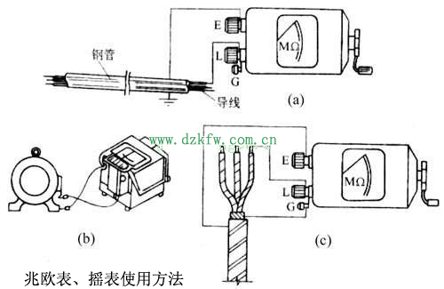 (7)搖表使用的時候要知道自己需要什么樣的工作方式,特別是對于測量絕緣電阻時的工作一定要注意,一般這樣的工作只用【l】和【e】端就可以,其余的不能使用。