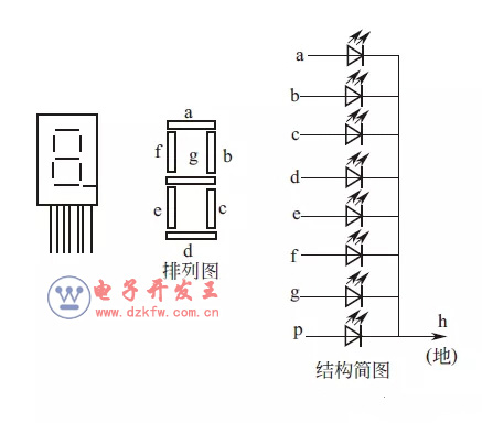 電子儀表中一般采用半導(dǎo)體數(shù)字顯示屏來顯示發(fā)動(dòng)機(jī)的轉(zhuǎn)速、車輛的行駛里程等。半導(dǎo)體數(shù)字顯示屏通常由7段組成,其結(jié)構(gòu)如下圖所示。