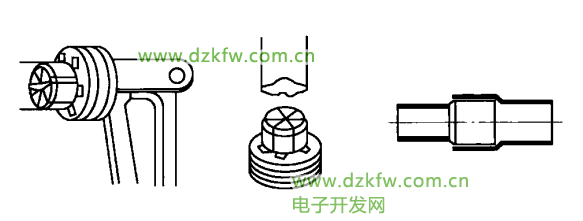對管接頭進行修復時,將修整器套人管接頭螺母內,壓在螺母接頭的斜面上,然后轉動修整器,直到磨損的斜面修整平為止。