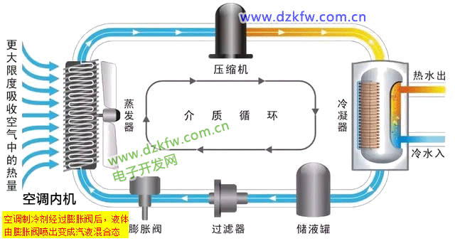 最簡單的制冷由四大要件組成:①壓縮機;②冷凝器;③節流閥;④蒸發器